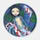 Koi Pond Mermaid - a beautiful mermaid with a tail much like a koi fish, emerging slightly from the pond with several koi fish friends swimming around her. I love this painting so much. My own original acrylic painting.