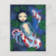 Koi Pond Mermaid - a beautiful mermaid with a tail much like a koi fish, emerging slightly from the pond with several koi fish friends swimming around her. I love this painting so much. My own original acrylic painting.