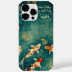 Soft watercolor koi pond phone case with inspirational quote: "When I let go of what I am, I become what I might be."