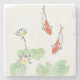 A stone coaster featuring an idyllic Zen watercolor painting of two koi in a koi pond with white water lilies and water lily pads.