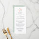 Our vintage Zen wedding menu features your starter courses, entrees and desserts in elegant charcoal gray lettering, accented with an illustration of a pair of koi fish and aquatic leaves in pale coral orange and spring green. Coordinates with our elegant Japanese inspired Koi Pond wedding invitation collection.