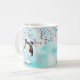 This cute mug features a kokeshi doll in a turquoise and dusky pink kimono with cherry blossoms.