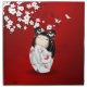 Kokeshi Doll Red Black White Cherry Blossoms Cloth Napkin