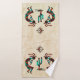 Brighten Your Bathroom with this Unique "One of a Kind" Southwest Kokopelli Bath Towel Set! It Features Two Southwest Kokopelli in Turquoise, Orange and Black Playing the Flute and Dancing Around a Cactus Under the Sun...on a Sandstone Background!