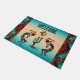 Personalize this Unique "One of a Kind" Southwest Kokopelli Doormat! It Features a Two Kokopelli Playing the Flute and Dancing Around a Cactus Under the Sun on a Turquoise and Orange Sunset Background...Surrounded by a Southwest Border in Turquoise, Orange and Black!