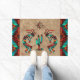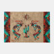 This is a "One of a Kind" Southwest Kokopelli Doormat! It Features a Two Kokopelli Playing the Flute and Dancing Around a Cactus Under the Sun on a Tan Background...Surrounded by a Southwest Border in Turquoise, Orange and Black!