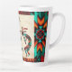 This is a Unique "One of a Kind" Southwest Kokopelli Latte Mug! It Features Two Southwest Kokopelli in Turquoise, Orange and Black Playing the Flute and Dancing Around a Cactus Under the Sun!