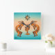 This is a Unique "One of a Kind" Southwest Kokopelli Wall Clock! It Features Two Copper Southwest Kokopelli Playing the Flute and Dancing Around a Cactus Under the Sun...on a Turquoise and Orange Sunset Background!