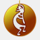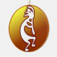 Kokopelli is a fertility deity, usually depicted as a humpbacked flute player (often with feathers or antenna-like protrusions on his head), who has been venerated by some Native American cultures in the Southwestern United States. Like most fertility deities, Kokopelli presides over both childbirth and agriculture. He is also a trickster god and represents the spirit of music. http://en.wikipedia.org/wiki/Kokopelli