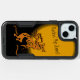 This phone case features a common Kokopelli southwestern character. This right-facing Kokopelli musician is playing music from a flute-like instrument. The background features a black background and glowing moon with musical notes flowing from the instrument. Fill in the template field with your words, or click customize to select a typeface style, size, and color you like.