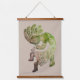 This is a wall tapestry with original photo artwork of a kokopelli in pastel hues. The tapestry has wooden top and bottom rails.
