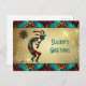 Personalize this "One of a Kind" Christmas Postcard! It Features a Kokopelli Playing the Flute Under the Moon on a Gold and Southwest Background