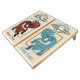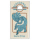 This is a cornhole set with original photo artwork of two kokopelli, one rust and the other turquoise. The board images may be customized, and each has upper and lower areas for text. Bag colors may be changed as well.
