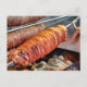 Close up shot of a Kokoretsi, a grilled dish of the Balkans and Asia Minor, consisting of lamb or goat intestines wrapped around seasoned offal, including sweetbreads, hearts, lungs, or kidneys