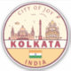 Kolkata minimalist, colorful art design featuring monuments and landmarks of the city in India.