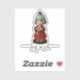 This collectible figurine blends traditional Korean elegance with modern charm. Dressed in a vibrant red hanbok with gold embroidery and a yellow ribbon, the character radiates cultural pride. Her iridescent bobbed hair shifts from blue to green and purple, crowned with a detailed red and gold floral headpiece. With large green eyes and a gentle smile, she forms a heart with her gloved hands, standing gracefully on a black base. A perfect fusion of heritage and creativity, this piece is ideal for collectors, K-culture fans, or anyone who loves unique character design.