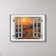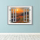 Korean Autumn Sunset Temple Faux Window View Canvas Print