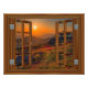 Korean Autumn Sunset Temple Faux Window View Photo Print