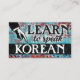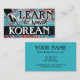 Colorful arty Learn To Speak Korean business cards in turquoise, aqua, red, yellow. Korean language Instruction business cards.