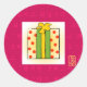 This Korean Merry Christmas on PINK Sticker features a cute little present wrapped in red polka dots, a green band and yellow ribbon, with the words "행복한 크리스마스 되십시오" ("Have a Merry/Happy/Blissful Christmas," formal) in Korean, repeated on a dark pink background, and coordinates well with my Korean Merry Christmas on PINK Folded Holiday Card. Perfect for your Christmas card envelopes, and for all your other seasonal sticker needs.