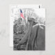 This postcard features a black and white photograph of the Korean War Veterans Memorial in Washington, D.C., highlighted by a full-color American Flag.