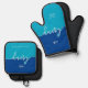 Kosher Kitchen Script Dairy with Hebrew Blue Oven Mitt & Pot Holder Set