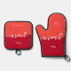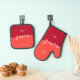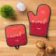Kosher Kitchen Script Meat with Hebrew Red Oven Mitt & Pot Holder Set