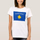 The front of this t-shirt boldly displays the Kosovar flag with its distinctive yellow map and white stars on a blue background. This is matched at the back by an attractive map of Kosovo.