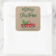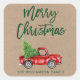 Kraft Green Brush Script Watercolor Red Vintage Truck with Christmas Tree - Merry Christmas Family Name Sticker