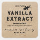 Homemade Vanilla Extract Label with square shape sticker features Homemade with love by "your Name", Ingredients list, Producer Name, vanilla flower graphic, and kraft background to give it a rustic look. You can edit and customise this vanilla extra label according to your needs.