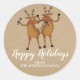 Cute dancing reindeer Happy Holidays Sticker set on a kraft background.