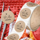 Enhance your crafting projects with our editable personalized handmade by stickers template. Perfect for showcasing your brand name with a heart and persolalized message for handmade items with kraft background.