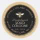 This apiary product label is fully editable. Personalize with your apiary name, location, product description and container size. Black circle on a kraft background and brown text. Heraldic honey bee illustration is a vintage medieval design.