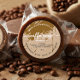 Kraft paper color Homemade coffee soap label with a coffee stain background design with elegant calligraphy font, space for your ingredients, and other details. Your Brand name with a statement made with love by (your name).