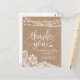 Kraft lace and lights rustic thank you postcard to send out to your wedding guests!