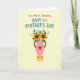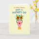 This card features a cheerful illustration on a pale cream background, with a loving message placed across the top in friendly, mixed sans-serif lettering. “TO A SPECIAL DAUGHTER…” appears first in warm red, followed just beneath by “HAPPY 1ST MOTHER’S DAY” in bright blue, making the milestone feel tender and celebrated ❤️. Below the text, a blush-pink vase sits centered like a small gift waiting to be admired. A deep red heart decorates the front of the vase, adding a sweet, affectionate touch without needing extra details. The bouquet rises upward with two large orange flowers with dark centers, surrounded by smaller blue and soft pink blooms that feel like a gentle nod of friendship and family closeness 🌼. Soft green and pale blue-grey leaves fill in the spaces, keeping the arrangement light and airy. At the base of the vase, a golden-yellow bow with lighter yellow polka dots is tied neatly, standing out against the smooth background.