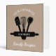 Personalized recipe book binder to keep your favorite family recipes . The rustic kraft paper texture background with baking utensils makes the cookbook binder a keepsake holiday gift for family.