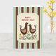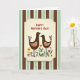 This design shows an off-white rounded frame set over a softly textured background with vertical stripes in cream, muted teal, and deep chocolate brown. Inside the frame, two stylized deep-brown birds stand close together in a small garden, with the larger one giving the smaller a tender, caring look that reads like close friendship and love ❤️. Each bird has a cluster of tiny flowers across its chest in red, yellow, blue, and pink, adding a sweet, blooming detail. Their tails form small heart shapes, reinforcing the affectionate mood without needing extra words. Along the bottom of the framed scene, simple flowers in bright tones mix with leafy green stems and foliage, creating a cozy, springlike setting 🌼. Centered above the illustration, the message “HAPPY MOTHER’S DAY!” appears in uppercase red letters, standing out clearly against the lighter stripes. The garden sits at the base of the frame with scattered blossoms and green leaves layered in front of the birds’ feet.