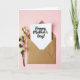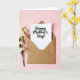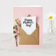 This card features a warm brown kraft envelope resting on a soft pink background, setting a gentle, affectionate tone like a quiet hug ❤️. A bright white card peeks out from the envelope flap, creating a crisp contrast that feels caring and close. Centered on the card front, the message “Happy Mother’s Day!” appears in black lettering, easy to read against the white space. Off to the left, a small cluster of creamy white blossoms with fresh green stems leans inward, as if drawn toward the message 🌼. The flowers echo the card’s white surface while adding a tender, friendship-like softness to the arrangement. Soft, diffused lighting smooths the shadows and highlights the cozy textures of paper and petals. The scene balances matte pink, earthy brown, clean white, and gentle green, with the blossoms positioned to the left of the envelope and the card emerging from the top opening.