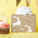 This Christmas wrapping paper has whimsical elements of reindeer and snowflakes in a repeating offset pattern on a Kraft paper background. This modern design is part of a mix n' match design set that you can search to see more of using ID589.
