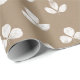 A rustic Kraft wrapping paper featuring a pattern of white three leafed clover on a Kraft color background.