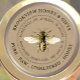 Vintage honeybee illustration in muted colors on a gradient background. Your apiary name is written in a classy, old-fashioned openface font. Embossed-style border.