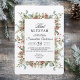 Celebrate this meaningful milestone with a beautifully designed Bat Mitzvah invitation featuring a stunning winter greenery frame. The artwork includes watercolor pine cones, eucalyptus leaves, cedar branches, and soft forest botanicals arranged around a clean, elegant text layout.