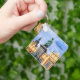 The key chain is made of metal and really sturdy. The flower design is really cheerful. The logo and colors are clear and crisp!