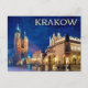 This Poland postcard depicts Krakow's Rynek Glowny (Central Square) on a beautiful night.