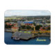 Harbor side view of Kralendijk, the capital of Bonaire. The view stretches from the blue waters of the Caribbean sea and Government House, to the rolling green hills beyond. Bonaire, one of the ABC islands, is popular with divers and snorkelers, as well as a desirable cruise destination.