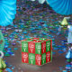 Gift box with Krampus head design, checkerboard red & green