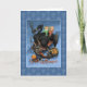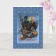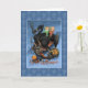 Krampus greeting card with blue Krampus head border. "You better watch out. Greetings from the Krampus" on the interior.
