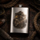 The product is a good size and came exactly as it was pictured. The lid is not attached to the flask, which could be dangerous on drunken nights... The print came out surprisingly well and looks very sharp. Would definitely recommend.