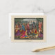 Postcard from West Bengal, Calcutta 1878-1883. In this curious subject Krishna appears in the guise of Kali—four-armed, wearing macabre garlands and with projecting red tongue—being worshipped by his [secret] lover Radha witnessed by other cowherd maidens (gopis) of the Yadavas clan in a forest glade. Krishna’s real identity is nonetheless alluded to by the peacock features he wears in his diadem, not to mention his nonchalant pose. The story tells that Radha’s husband hears of her dalliance with Krishna and rushes to confront her lover, but before he arrives (he is glimpsed entering upper right) Krishna transforms himself into Kali and instructs Radha to behave as if performing a puja (ritual worship). The enraged husband is deceived by this ploy and moved to hear of his wife’s piety in worshipping the family deity. The composition and setting have all the hallmarks of a Victorian stage set, complete with painted landscape backdrop. See the entire Enlightenment Poster collection in the INVITES | Invitations & Cards section.